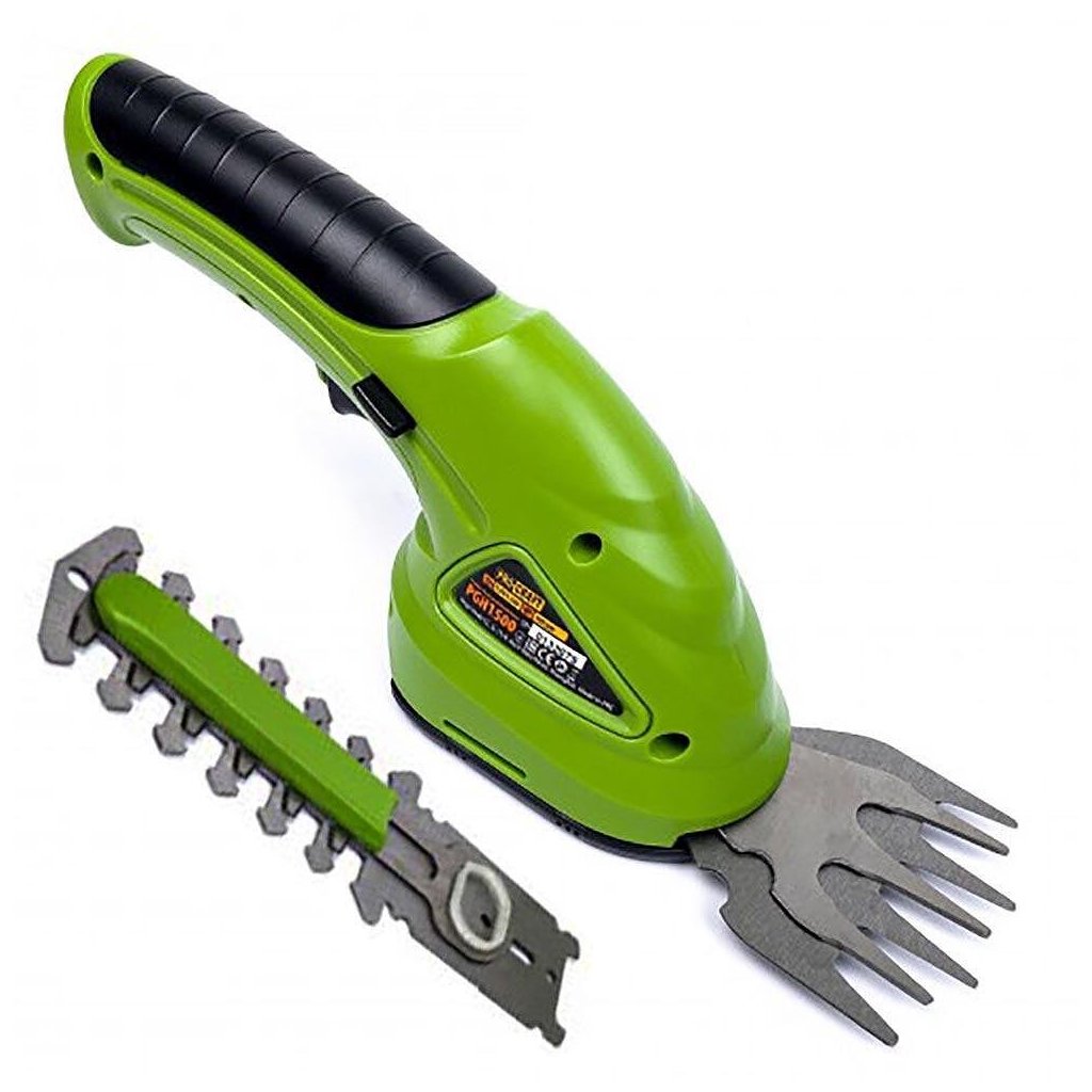 AKU nožnice na trávu, kry a živý plot. Nástroj je vhodný hlavne na dočisťovanie pri okrajoch trávnika, v oblastiach obrubníkov a iných prekážok. Nadstavec na úpravu kríkov umožňuje vďaka svojmu kompaktnému rozmeru a malej hmotnosti aj detailné tvarovanie zelene. Na jedno nabitie vydrží pracovať až 30 minút. Batérie je zabudovaná v rukoväti prístroja a jej plné nabitie trvá cca 240 minút.