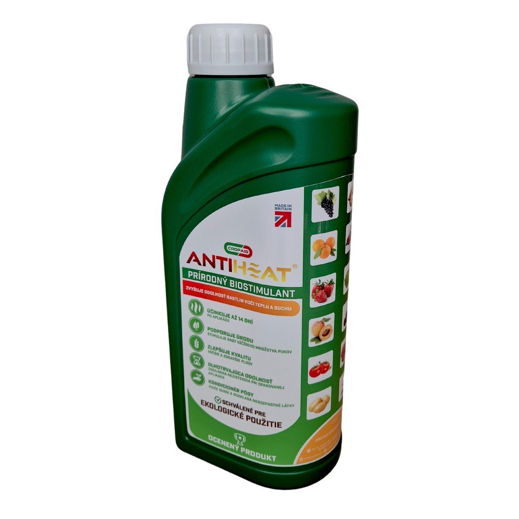 CropAid AntiHeat® je prírodný biostimulant určený na ochranu rastlín pred extrémnym teplom, suchom a stresom z vysokých teplôt. Pomáha rastlinám udržať optimálnu hydratáciu, podporuje fotosyntézu a zvyšuje odolnosť voči letným klimatickým extrémom.