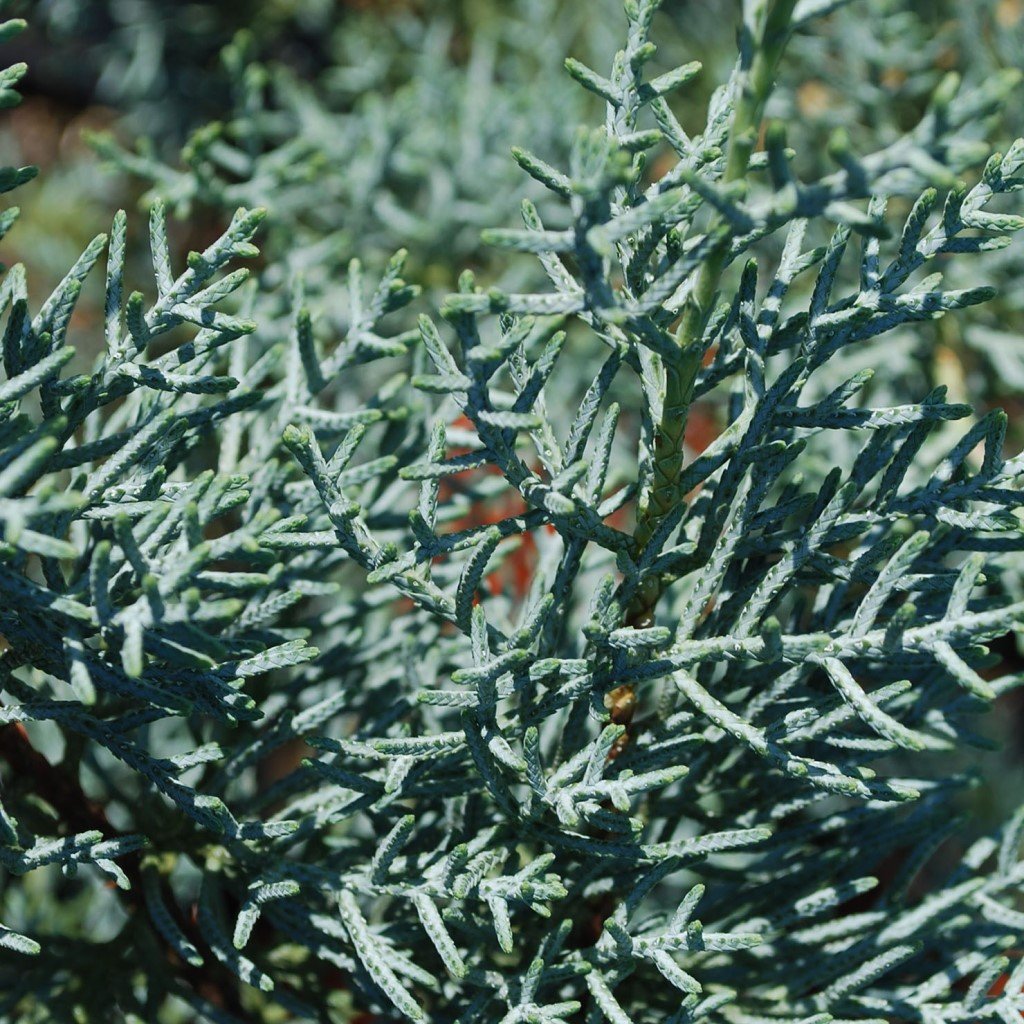 Jemné, šupinaté ihličie má typickú sivomodrú až modrozelenú farbu, ktorá vytvára zaujímavý kontrast k tmavozeleným drevinám. Počas roka si drží stabilnú farbu aj hustotu, dominantná je textúra a farba olistenia.