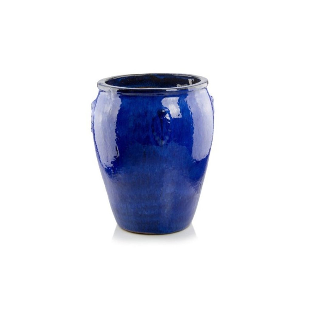 Keramický mrazuvzdorný vysoký obal na kvetináč typu džbánu do exteriéru, na terasy a do zimných záhrad sa vyznačuje veľmi kvalitným prevedením. Džbán je zaliaty tmavomodrou sýtou kobaltovou lesklou glazúrou za výpalu pri vysokej teplote 1100°C.