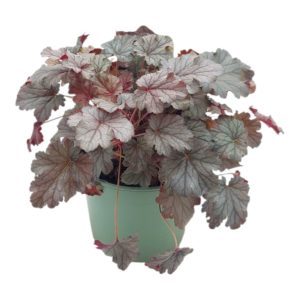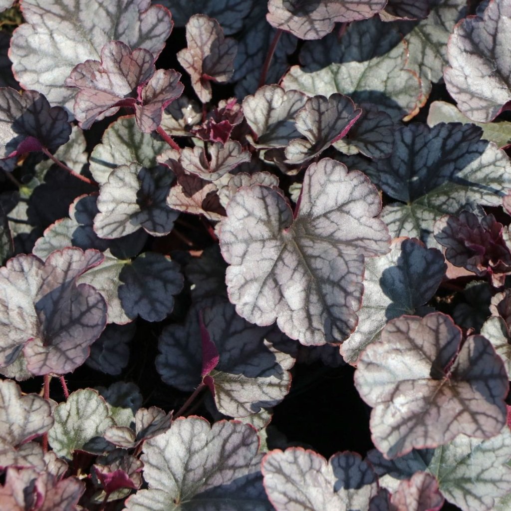Heuchera ‘Silver Scrolls’ očarí kontrastom striebristých odleskov a tmavých purpurových tónov na listoch. Tento kultivar prináša do záhrady eleganciu a jemnú hru farieb, ktorá zostáva atraktívna počas celého roka.