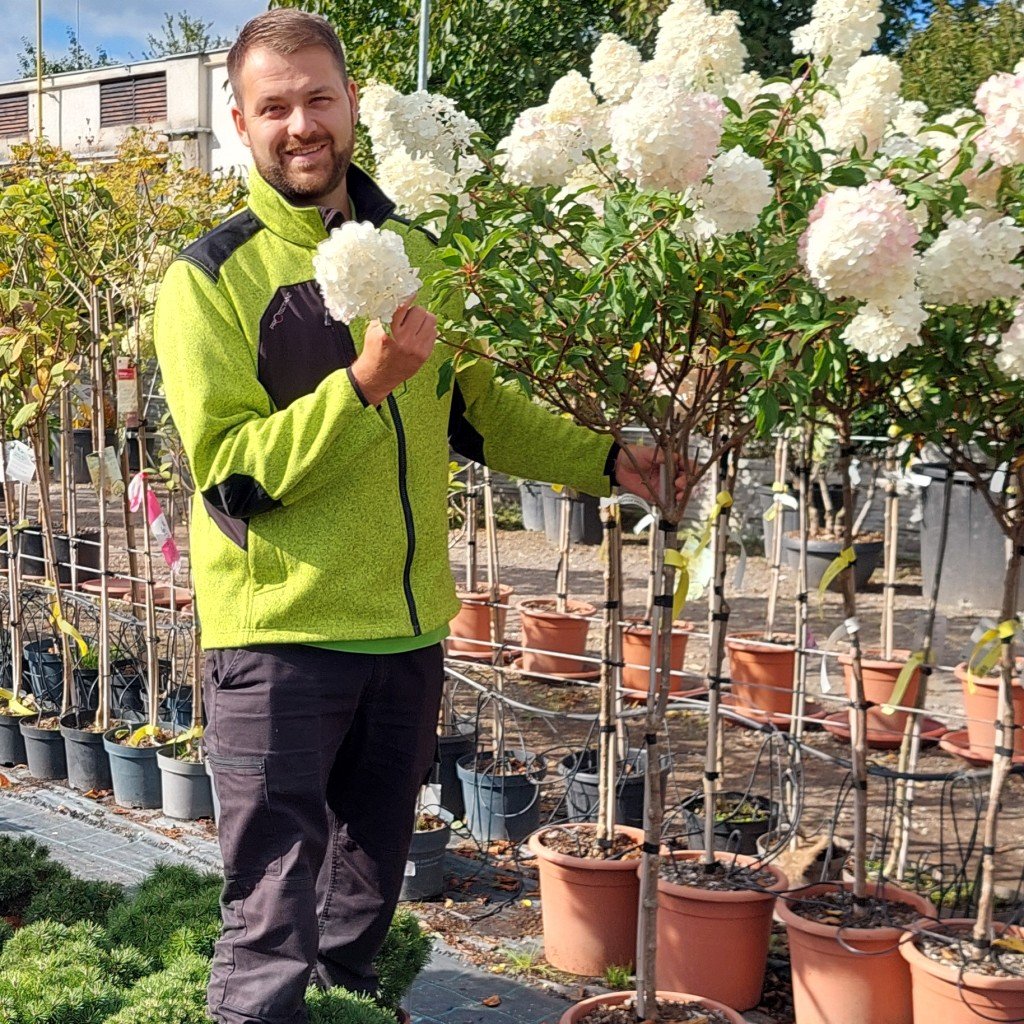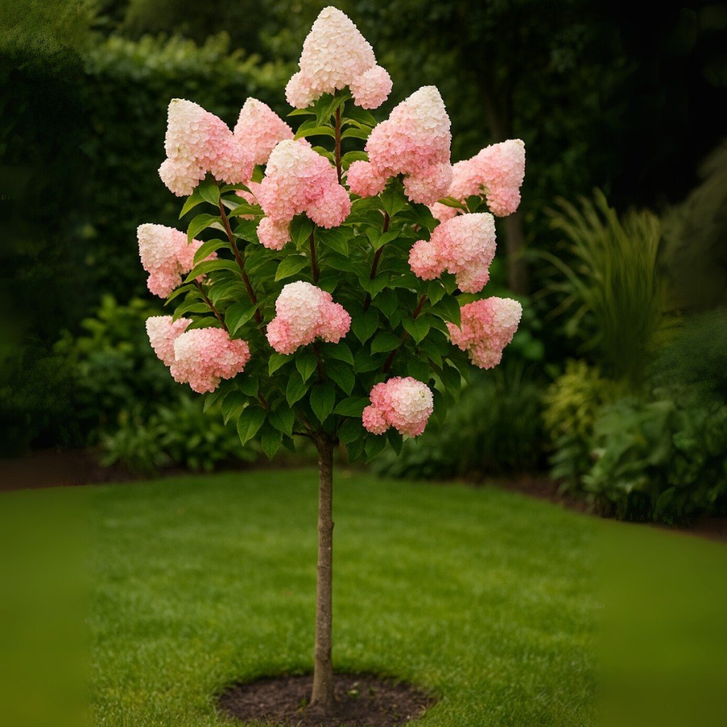 Rastlina je naštepená na kmienok, čo jej dodáva elegantný stromčekovitý vzhľad. Výšku kmienka si zákazník môže zvoliť z ponuky variantov. Hodí sa ako solitér do záhonov, vynikne v nádobách pri vchode či na terase a pôsobivo dopĺňa moderné aj vidiecke výsadby.Výška korunky hortenzie závisí od ročného obdobia a može byť od 30 do 100 cm.