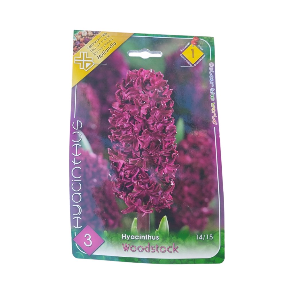 Hyacinthus Woodstock má kvety špecifickej, intenzívnej vône bordovej farby. Vysádzame v jesenných mesiacoch až do prvých mrazov. Nevyžaduje žiadnu špeciálnu zeminu. V záhrade je najkrajší, keď vysádíme vedľa seba 5-6 kusov rovnakej farby. Sadíme od septembra do decembra, do hĺbky 15 cm, s rozostupmi medzi cibuľami 15 cm. Kvitne od marca do apríla. Dorastá do výšky 20 cm.