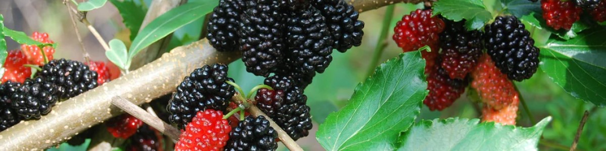 Moruša (Morus alba): Moruša, ktorá nás očarí svojimi jemnými, sladkými plodmi, si získava miesto aj v našich záhradách. Je bohatá na vitamíny C a K, vápnik a draslík. Je to preto vynikajúci spoločník našich chutných raňajok.