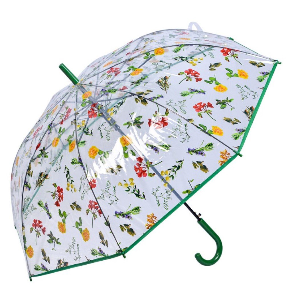 Dáždnik je tvorený ôsmimi pevnými poľami, ktoré spolu s kovovou konštrukciou a pružnými lamelami zaručujú vysokú odolnosť. Vďaka priehľadnému materiálu budete mať skvelý výhľad aj počas dažďa a zároveň si vychutnáte hravosť kvetinovej potlače, ktorá rozžiari vaše okolie.