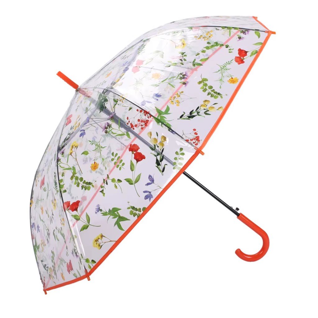 Tento pôvabný priehľadný dáždnik s jemnou potlačou pestrofarebných lúčnych kvetov je dokonalým doplnkom pre dievčatá aj ženy, ktoré chcú zažiariť aj počas pochmúrnych dní. Jeho romantický vzhľad pôsobí nežne a zároveň sviežo, vďaka čomu sa stane nielen praktickou ochranou pred dažďom, ale aj štýlovým módnym doplnkom.