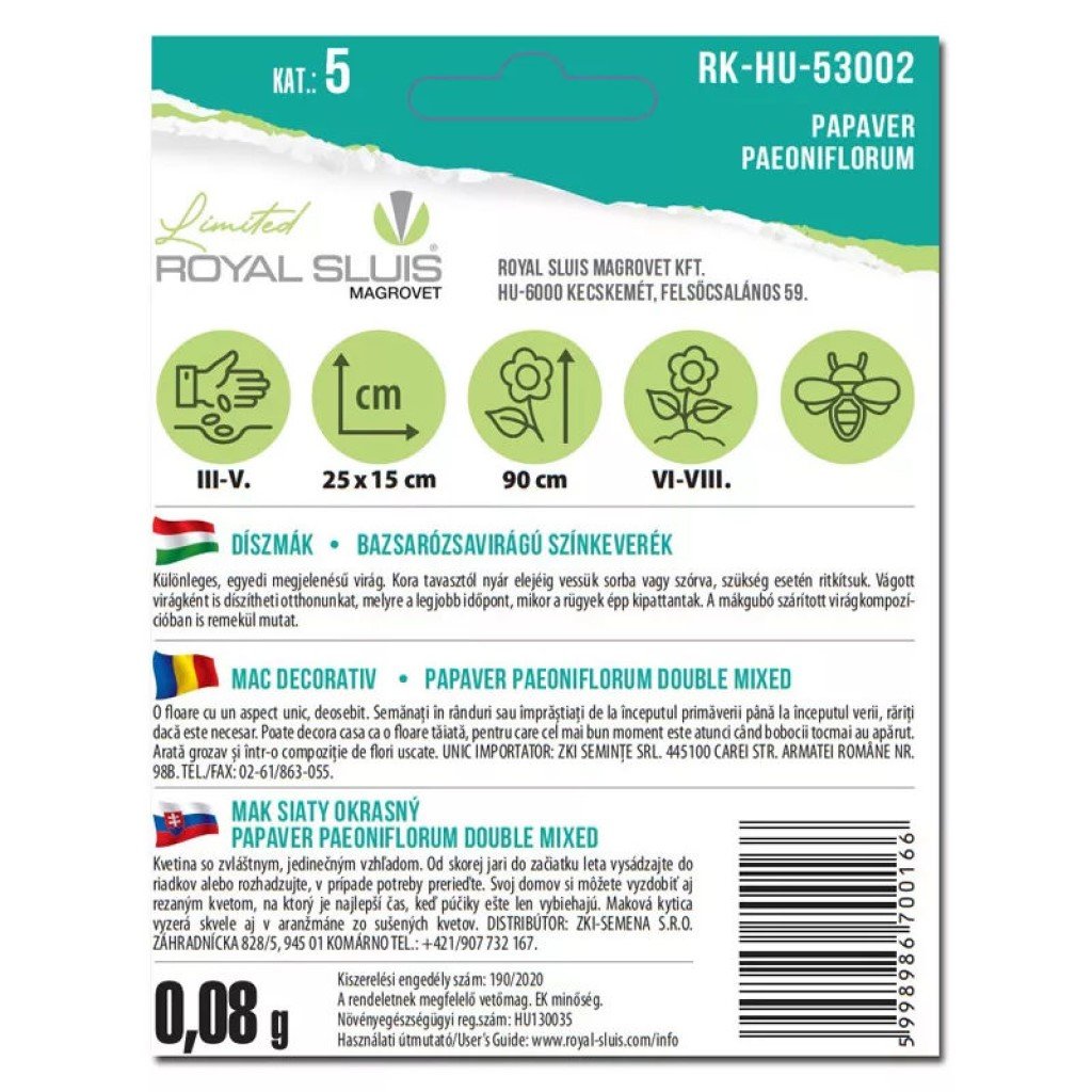 MAK SIATY OKRASNÝ PAPAVER PAEONIFLORUM