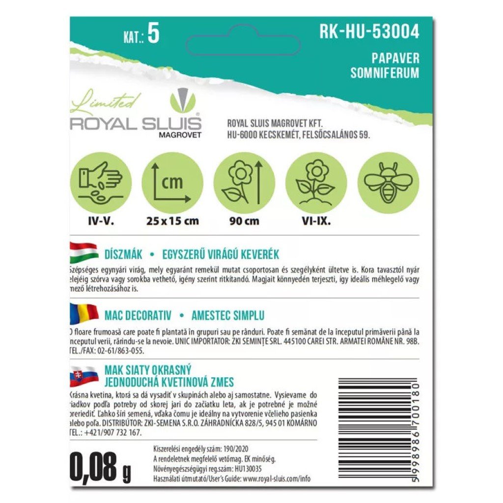 MAK SIATY OKRASNÝ PAPAVER SOMNIFERUM