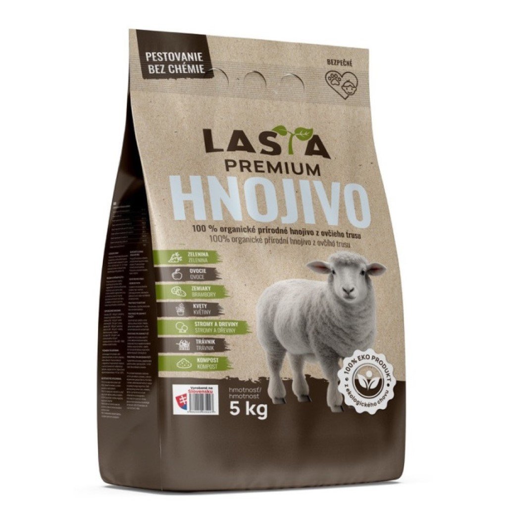 Čisto prírodná výživa pre zdravú pôdu a silné rastliny. LASTA Premium je ekologické organické hnojivo z vyzretého ovčieho trusu, ktoré dodáva rastlinám živiny postupne a zároveň zlepšuje štruktúru pôdy a jej úrodnosť.