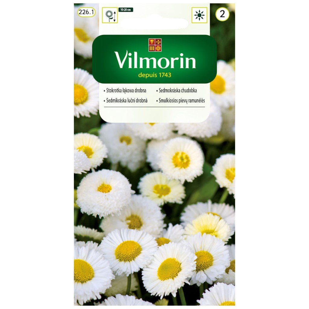 - Nízka dvojročná rastlina s bielymi alebo jemne ružovými kvetmi so žltým stredom.