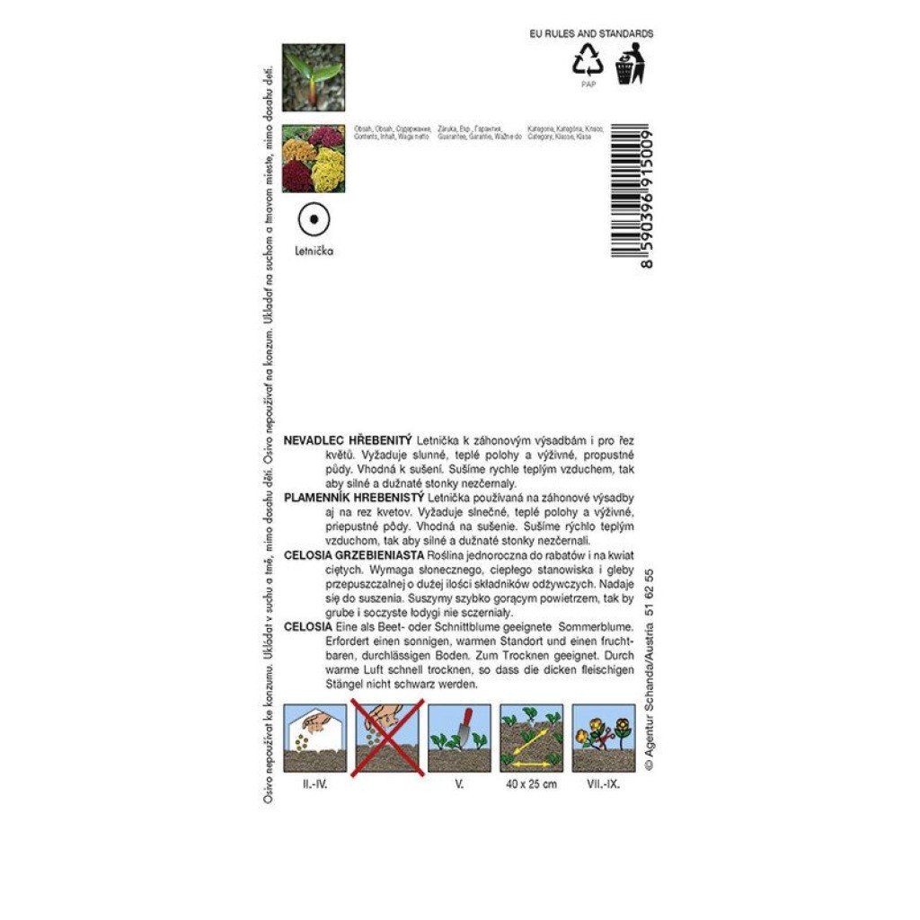 Výsev február – apríl, do skleníka, 20 °C, predpestovanie 2 – 3 mesiace, 15 – 18 °C, výsadba v máji, spon 40 x 25 cm.