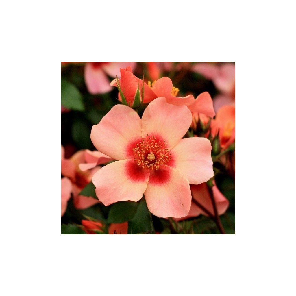 Rosa ‘For Your Eyes Only’ je výnimočná hybridná perzská ruža, ktorá zaujme jemnými lososovými kvetmi s výrazným tmavočerveným očkom. Táto orientálna kráska patrí medzi moderné odrody vyšľachtené z divokých perzských ruží, vďaka čomu spája exotický vzhľad s dobrou odolnosťou pre naše podmienky. 🌹