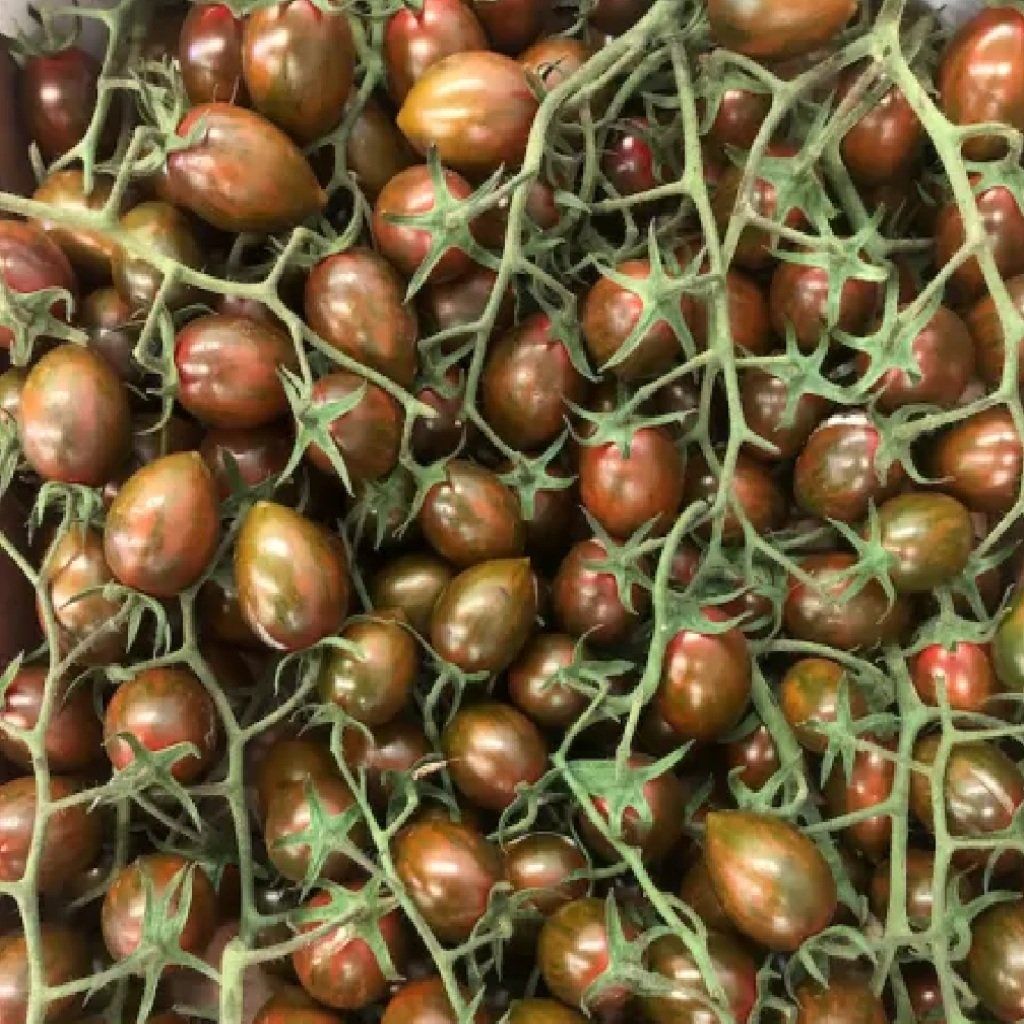 🍅 Vzhľad a plody: Plody sú datterino‑typ, oválne‑štíhle, s priemernou hmotnosťou 35–40 g. Na dozretí sa objavujú vynikajúce zelené s tmavo červenými/oranžovými pruhmi, dužina je sýto červená, bohatá na likopén, s vysokým obsahom cukrov (vysoký °Brix) a výnimočnou sladko‑aromatickou chuťou. Vznikajú strapce s 6–10 plodmi, ideálne na konzumáciu aj varenie.