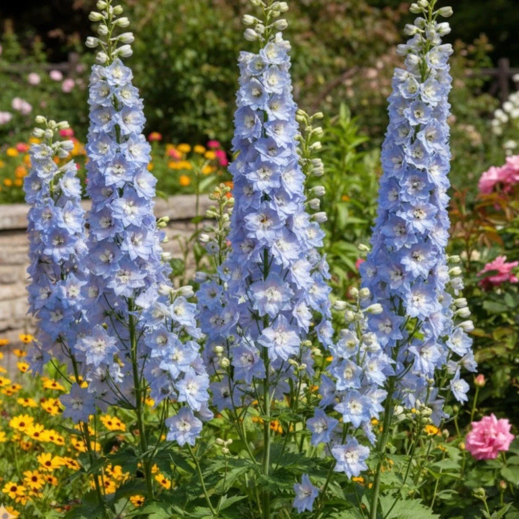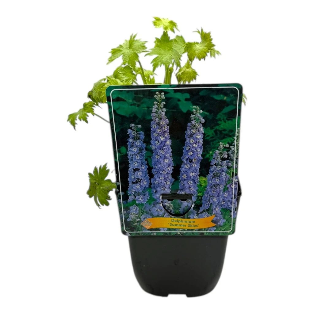 Delphinium ‘Summer Skies’ je elegantná trvalka, ktorá očarí jemnými modro-fialovými kvetmi a dodáva záhrade romantický vertikálny akcent. Vynikne ako dominantný prvok v záhone alebo v skupinovej výsadbe, kde vytvára pôsobivý farebný efekt.