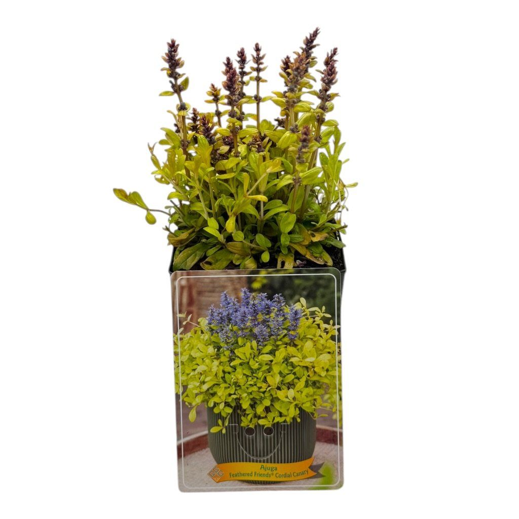 Ajuga ‘Feathered Friends Cordial Canary’ je nízka, pôdopokryvná trvalka, ktorá zaujme výrazne žlto-zeleným až chartreuse listom a dekoratívnym kontrastom v záhone. Vďaka svojmu hustému a rýchlo sa rozrastajúcemu rastu je ideálna na pokrytie pôdy.