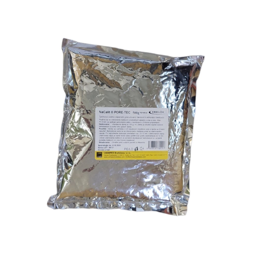 Nacalit je vysokoúčinný špeciálny bentonit vyrobený na sodno-vápenatom základe, určený pre nápojárske technológie. Preparát zabezpečuje odstránenie neskoršie reagujúcich bielkovín a ostatných rušivých látok aj v prostredí s vysokým pH, resp. s nižším obsahom kyselín. Po aplikácii sa vytvára jedinečná zrazenina, ktorá úplne vypadne z nápoja, čo je dôležité pri ošetrení ovocných štiav a sladkých rezerv. Ako prevencia sa dávkuje 50-200 g/100 l. NACALIT PORE-TEC sa rozpustí v 3 až 5 násobnom množstve vody a nechá sa napučať na 6 hodín. Bentonitová kaša sa za neustáleho miešania pridáva do ošetrovaného nápoja. Je nutné aktívn miešanie cca 10 až 15 min. v ošetrovanom nápoji. Ošetrovaný nápoj je potrebné stočiť alebo prefiltrovať (podľa sedimentácie) do 14 dní.